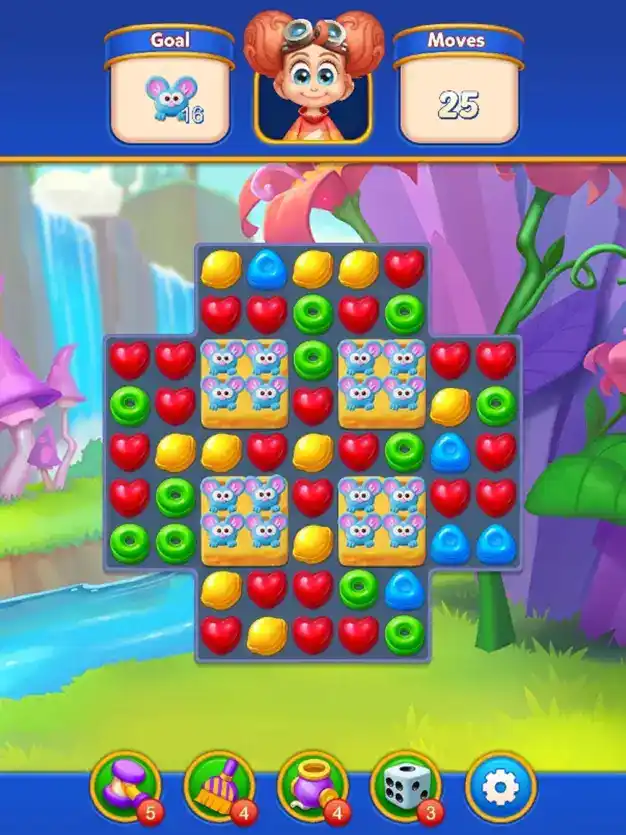 Planuj swoje ruchy strategicznie i dopasowuj więcej niż trzy identyczne cukierki, aby zdobywać różnorodne ulepszenia oczyszczające planszę.